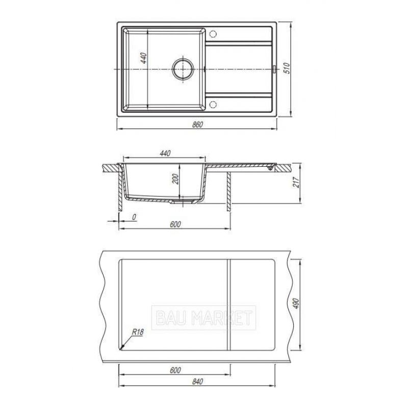 Мойка кухонная Florentina Липси 86 см жасмин (20.130.D0860.201)
