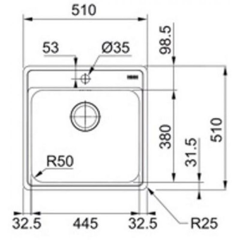Мойка кухонная Franke ВСX 210-51 TL 51x51 со стоп-вентилем, нержавеющая сталь