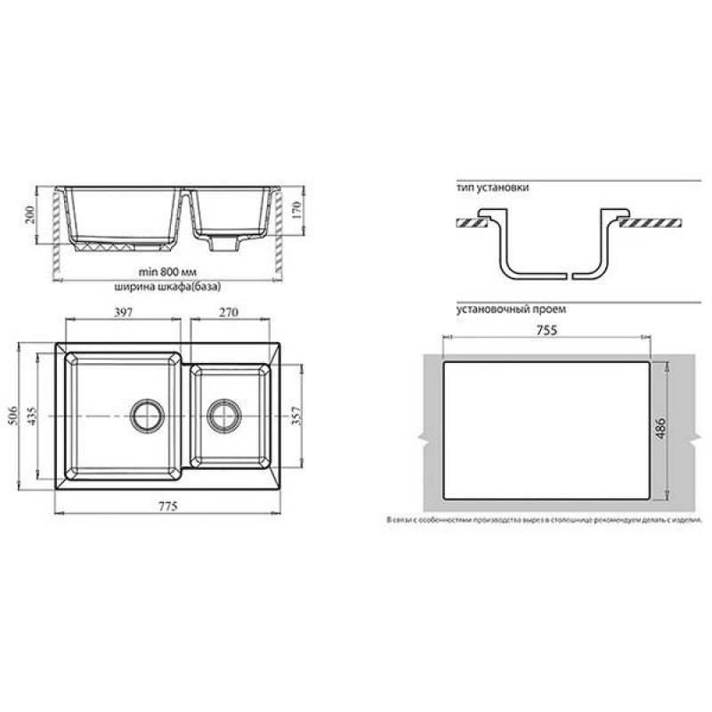 Мойка кухонная GranFest GF-P780K графит