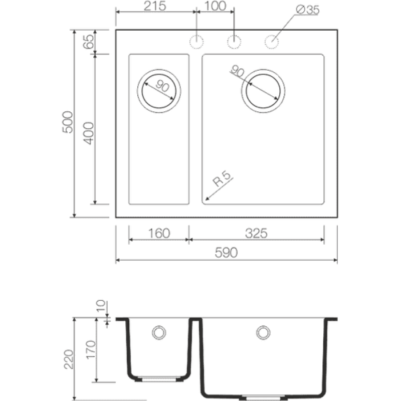 Мойка кухонная Omoikiri Bosen 59-2-EV 59x50 эверест