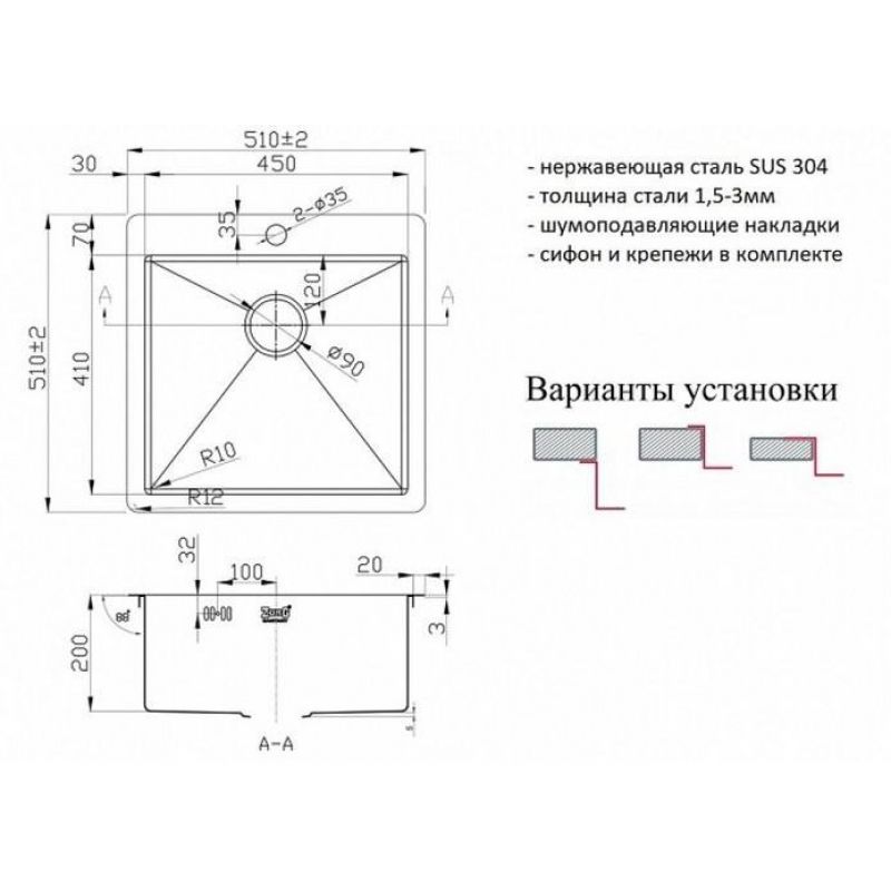 Мойка кухонная Zorg INOX PVD 5151 51x51 GRAFIT/ BRONZE