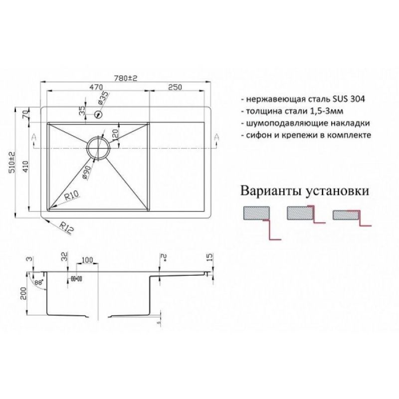 Мойка кухонная ZorG PVD-7851-L GRAFIT