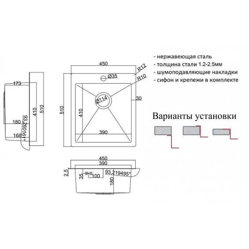 Мойка кухонная ZORG Steel Hammer SH RR 4551