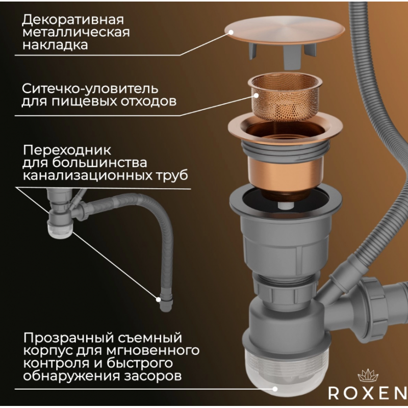 Мойка Roxen Simple 500x480x220, 560220-50BR-GR, бронза