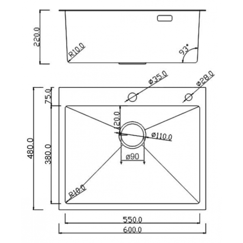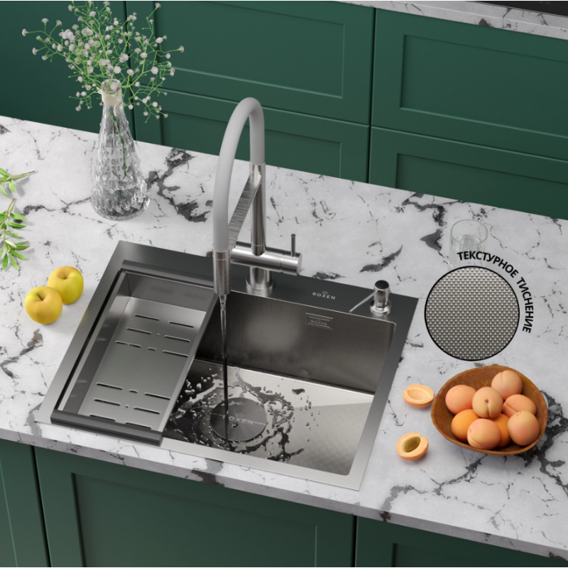 Мойка Roxen Simple 600x480x220, 560220-60-GR, сатин (текстура зерно)