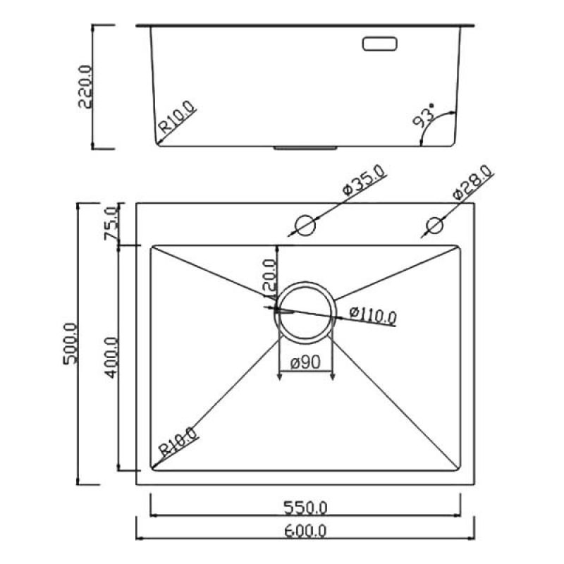 Мойка Roxen Simple 500x480x220, 560220-50G-GR, золото