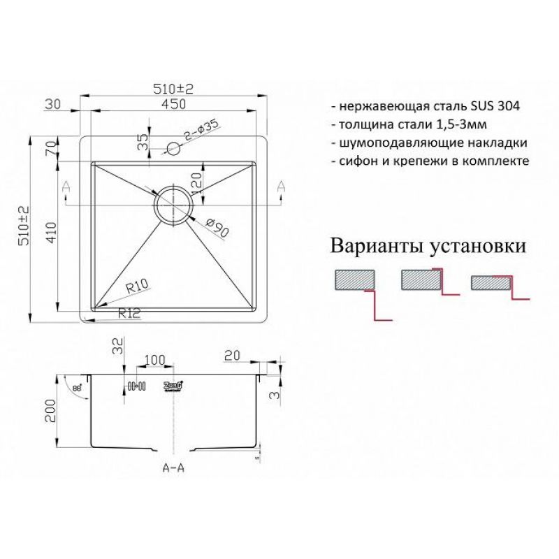 Мойка ZORG PVD 5151 GRAFIT 3мм