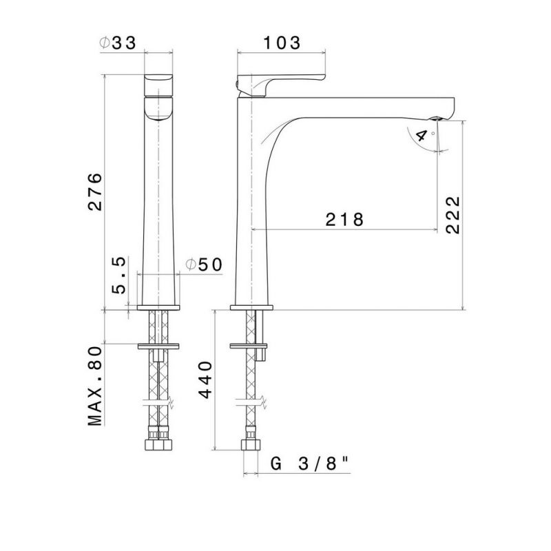 Однорычажный смеситель для раковины OLE высокий без донного клапана хром