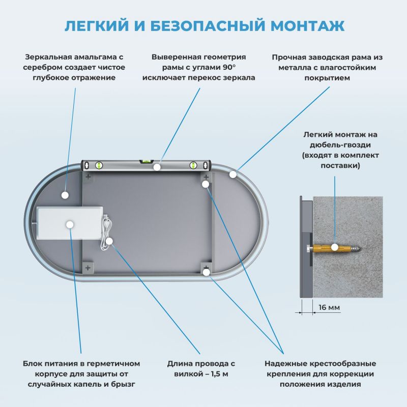 Овальное зеркало с фронтальной LED-подсветкой Wellsee 7 Rays' Spectrum 172201980