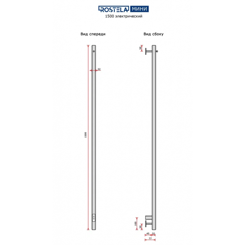Полотенцесушитель электрический Ростела Мини 1 1500/1 (Ral 9016,крючком, диммер)