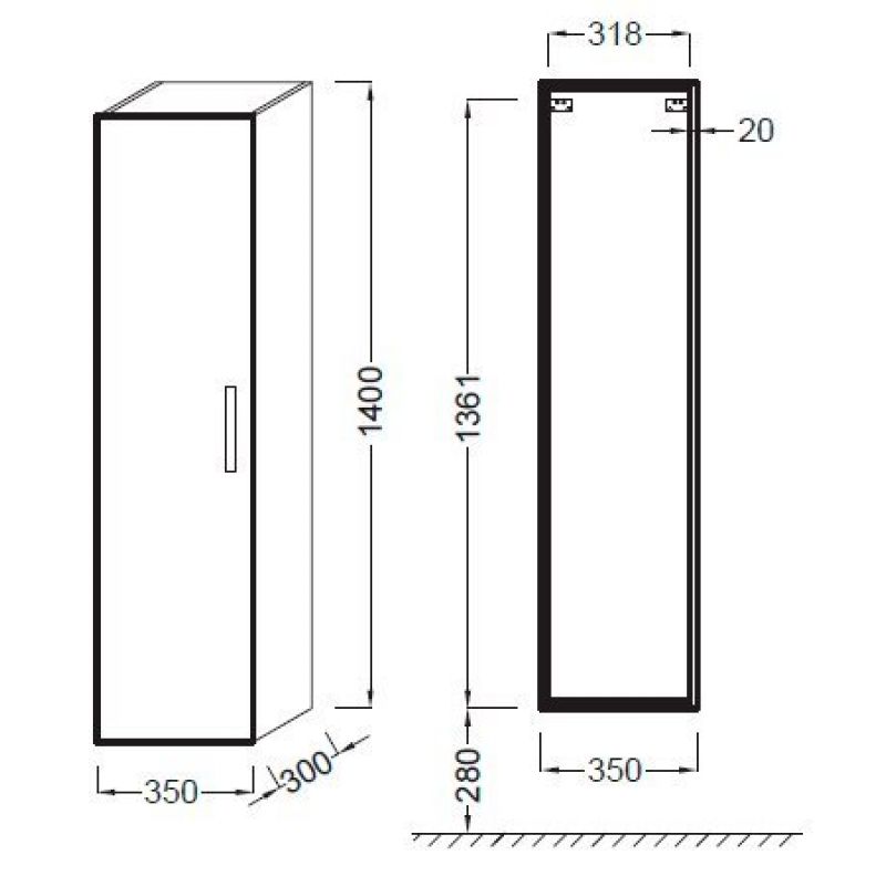 Подвесной шкаф-пенал Jacob Delafon Ola белый 35x140 см EB396-J5