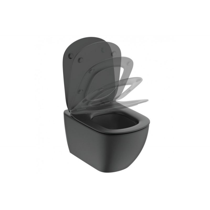 Подвесной унитаз Ideal Standard Tesi Aquablade T0079V3+T3527V3, сиденье тонкое Soft-close, Silk Black (черный матовый)