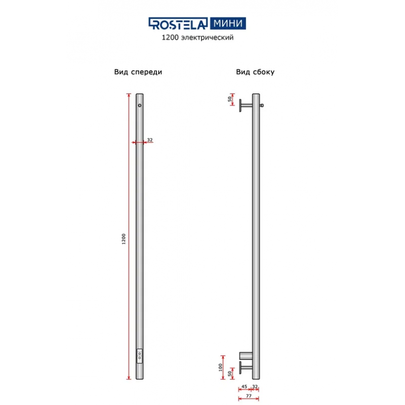 Полотенцесушитель электрический Ростела Мини 1 1200/1 (Ral 9016, с крючком, диммер)