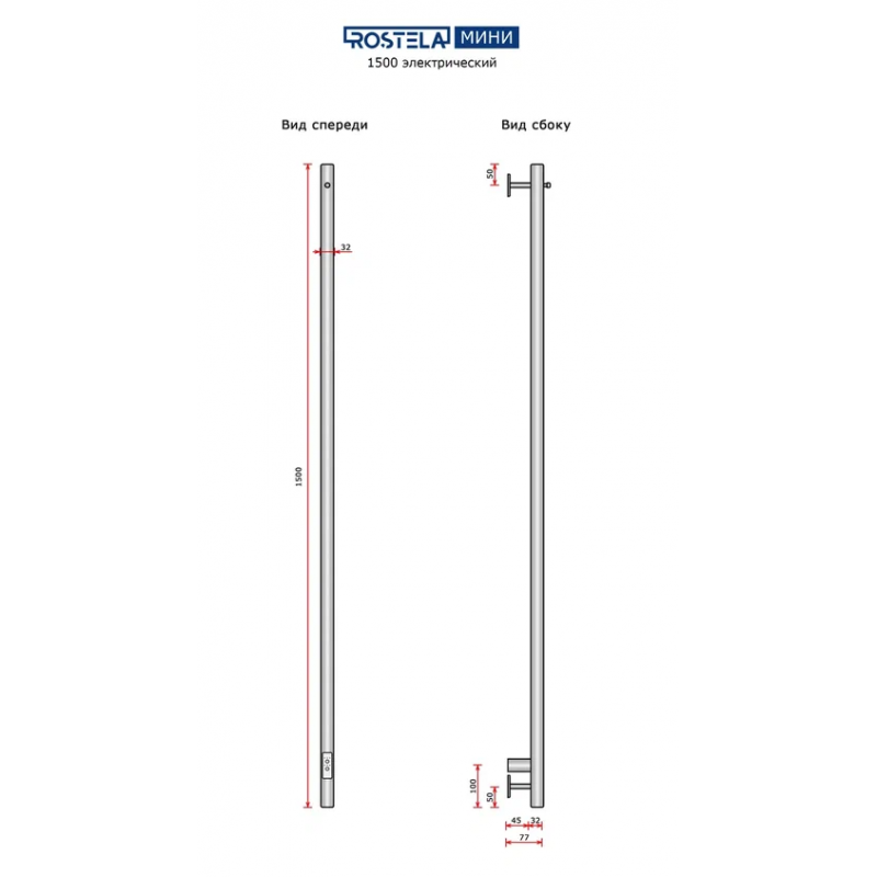 Полотенцесушитель электрический Ростела Мини 1 1500/1 (хром, с крючком, диммер)