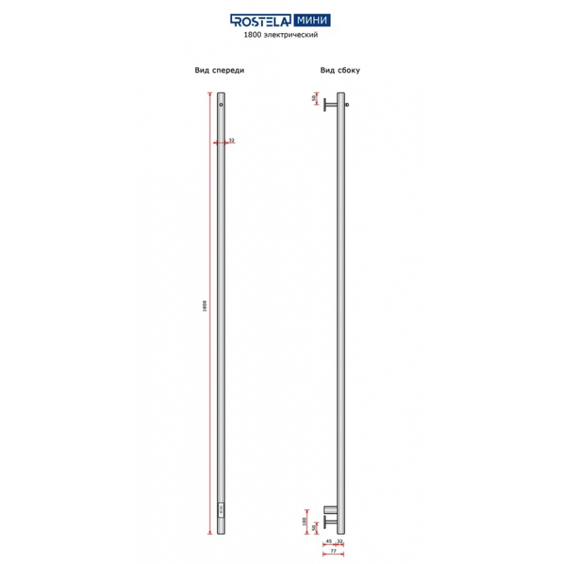 Полотенцесушитель электрический Ростела Мини 1 1800/1 (Ral 9005, с крючком, диммер)