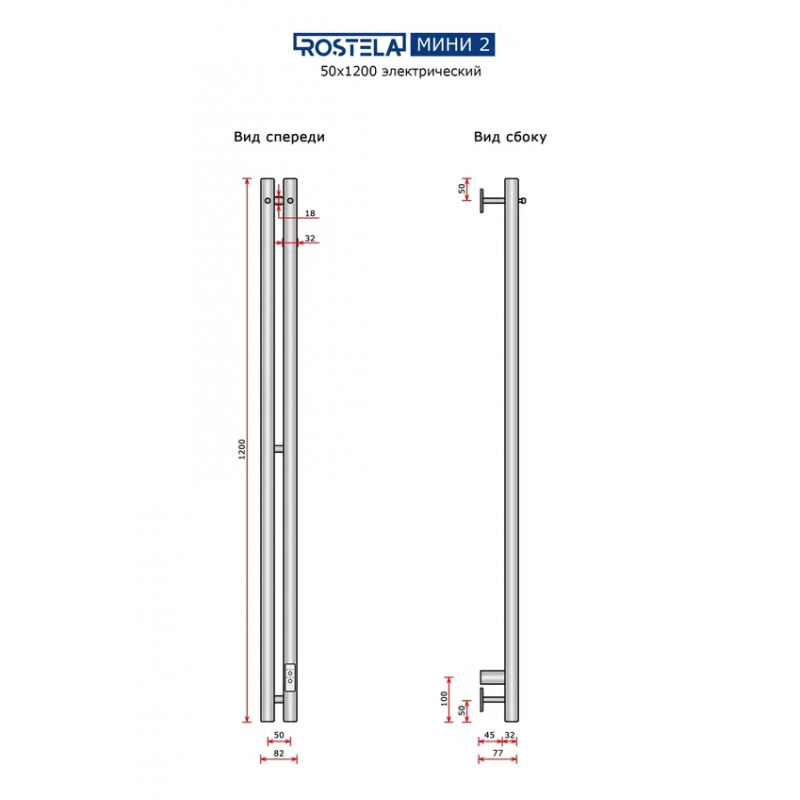 Полотенцесушитель электрический Ростела Мини 2 50x1200/2 (с крючками, диммер)