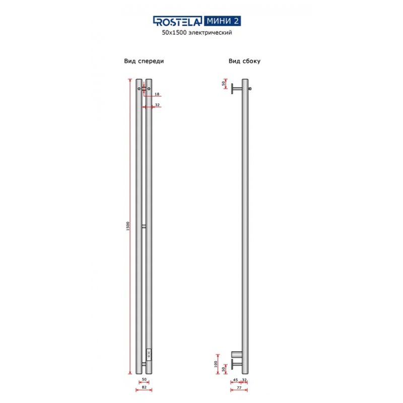 Полотенцесушитель электрический Ростела Мини 2 50x1500/2 (с крючками, диммер)