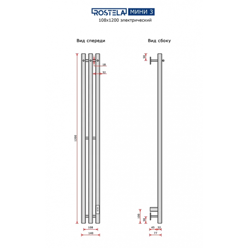 Полотенцесушитель электрический Ростела Мини 3 108x1200/3 (хром, с крючками, диммер)