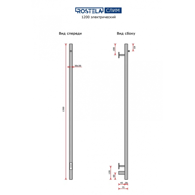 Полотенцесушитель электрический Ростела Слим 1 1200/1 с крючками (диммер)