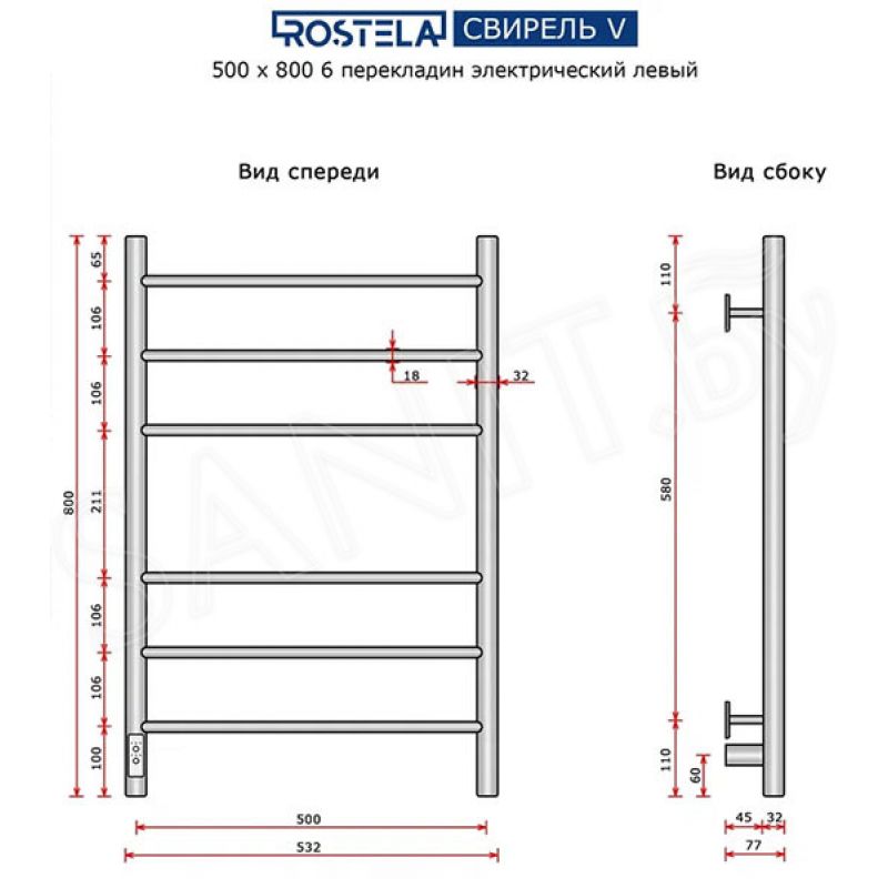 Полотенцесушитель электрический Ростела Свирель 400х800/6 (диммер, левый) хром