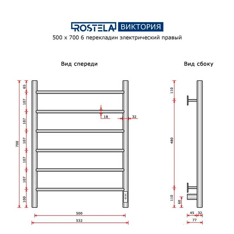 Полотенцесушитель электрический Виктория 500х700/6 (диммер, правый) хром