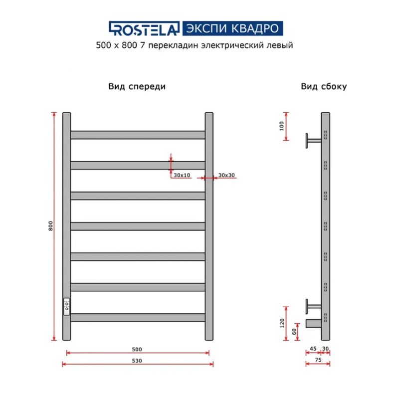 Полотенцесушитель Ростела Экспи Квадро V 30 500x800/7