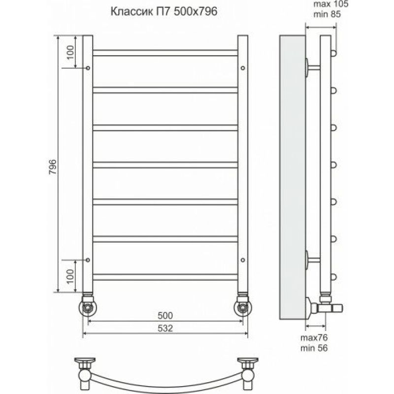 Полотенцесушитель водяной Terminus Классик П7 500x796 (наружная резьба) чёрный матовый