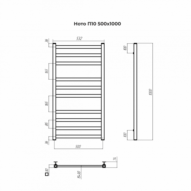 Полотенцесушитель водяной Terminus Ното П10 500х1000