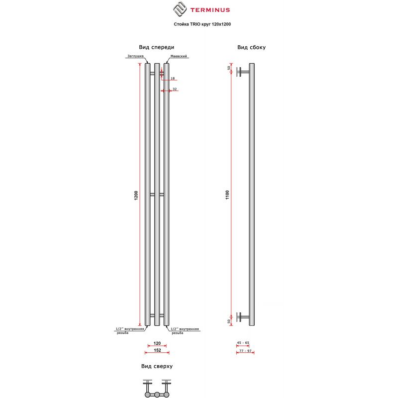 Полотенцесушитель водяной Terminus Стойка Trio (круглое сечение) 120х1200 матовое золото