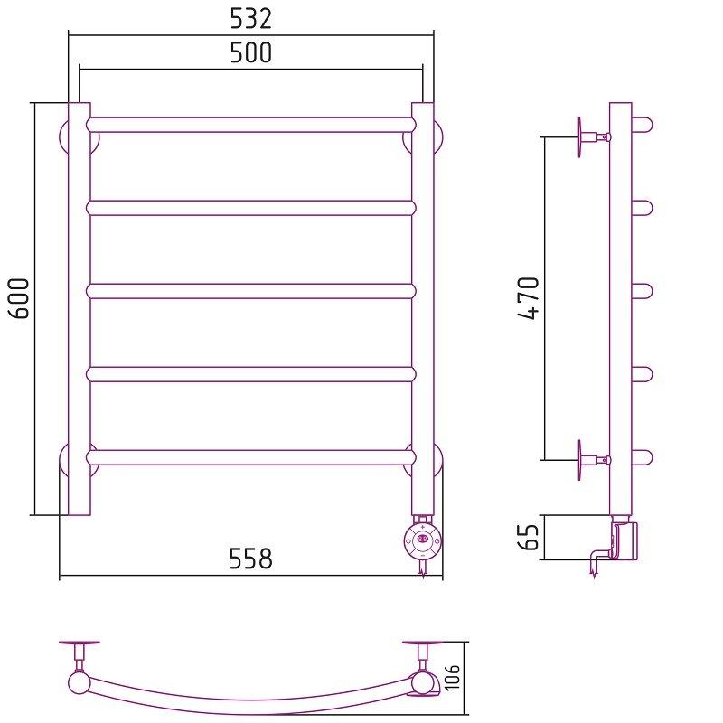 Полотенцесушитель электрический Стилье Формат 12, 50/60, ширина 50 см, высота 60 см, ТЭН справа, хром, 00512-6050