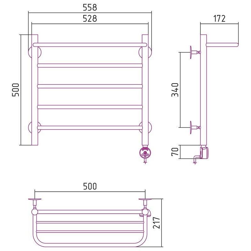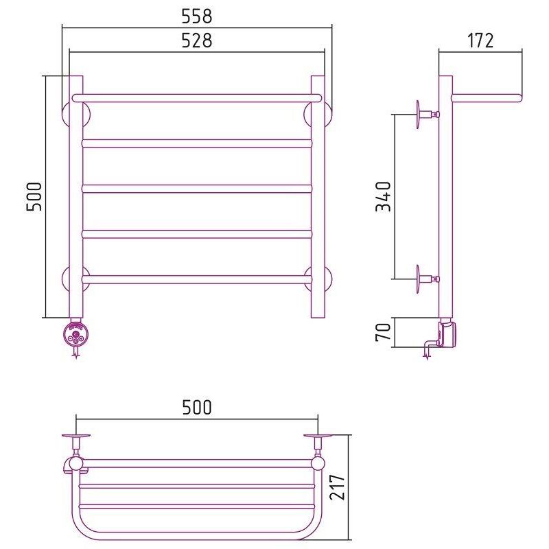 Полотенцесушитель электрический Стилье Формат 20 ТП/ТЛ 00520-5050/00521-5050, с полкой, высота 50 см x ширина 50 см, хром