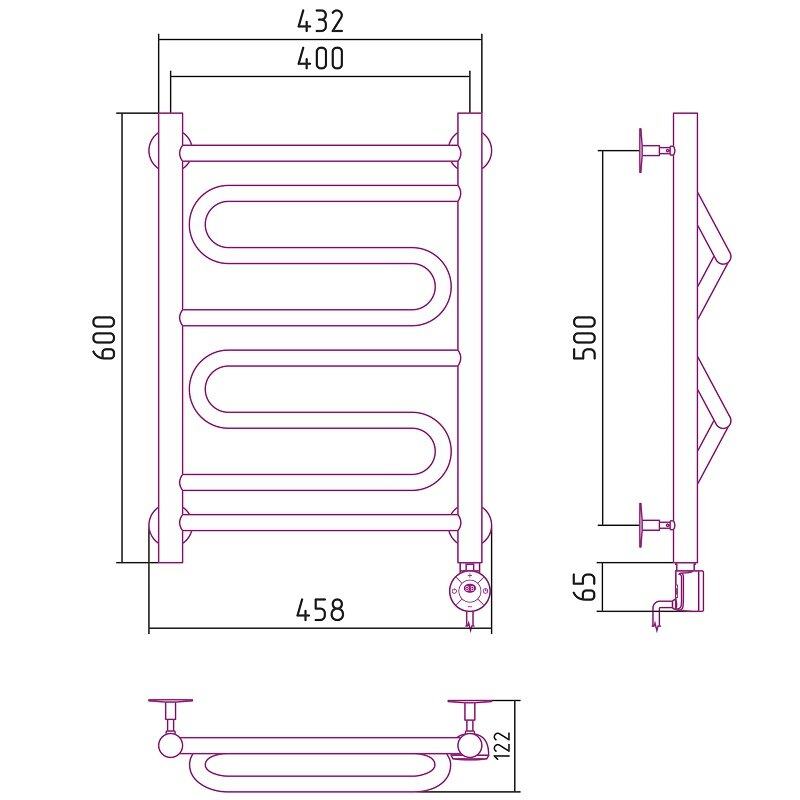 Полотенцесушитель электрический Стилье Формат 22, 40/60, ширина 40 см, высота 60 см, ТЭН справа, черный матовый, 31522-6040