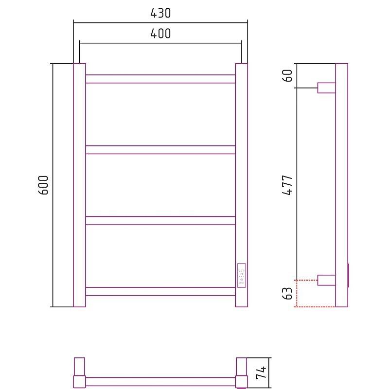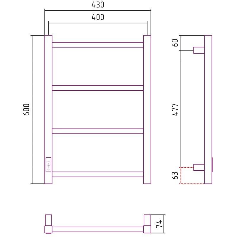 Полотенцесушитель электрический Стилье Формат 26, ширина 40 см, высота 60 см, диммер слева/справа, черный, 17527-6040/17526-6040