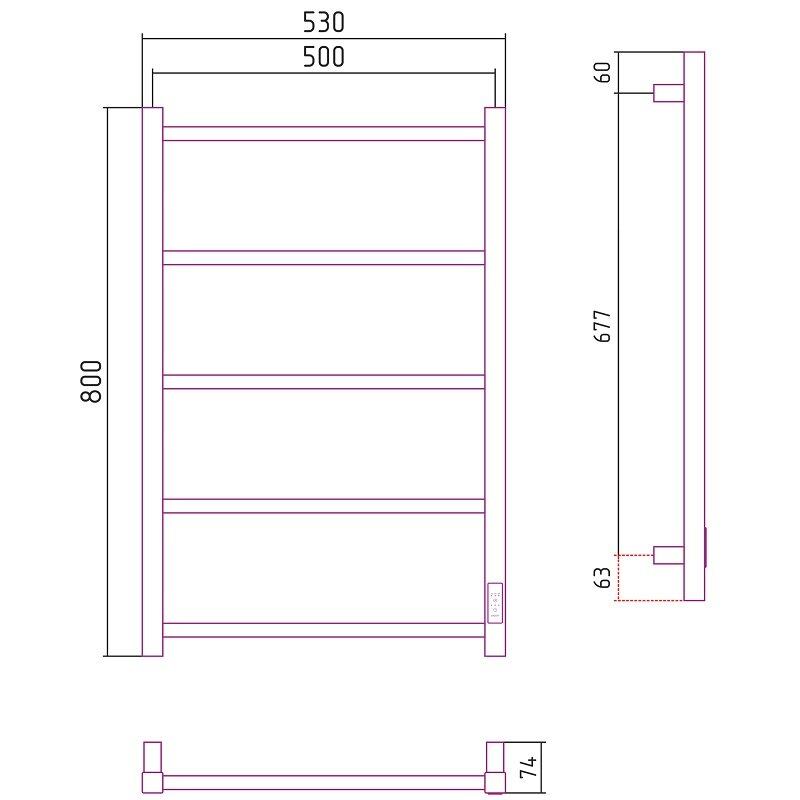 Полотенцесушитель электрический Стилье Формат 26, ширина 50 см, высота 80 см, диммер слева/справа, белый матовый, 30527-8050/30526-8050