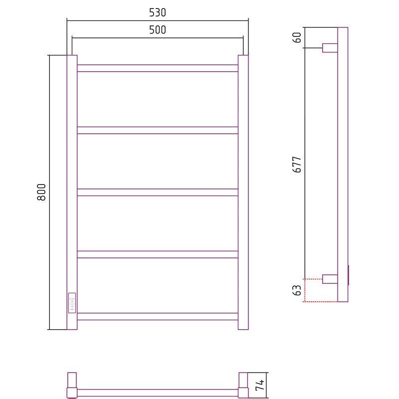 Полотенцесушитель электрический Стилье Формат 26, ширина 50 см, высота 80 см, диммер слева/справа, черный, 17527-8050/17526-8050