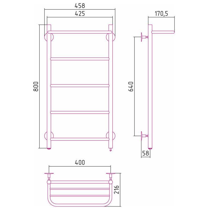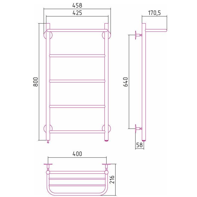 Полотенцесушитель электрический Стилье Формат 30 ТП/ТЛ 00530-8040/00531-8040, с полкой, высота 80 см x ширина 40 см, хром
