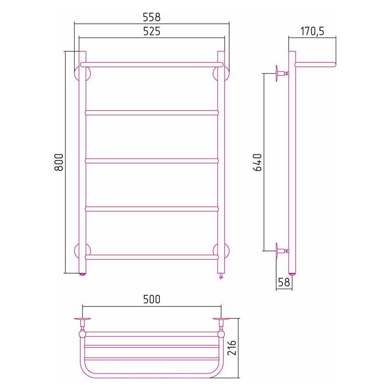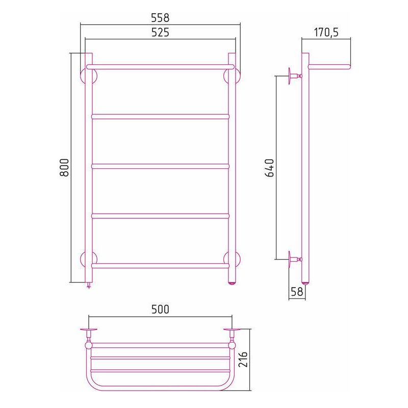 Полотенцесушитель электрический Стилье Формат 30 ТП/ТЛ 00530-8050/00531-8050, с полкой, высота 80 см x ширина 50 см, хром
