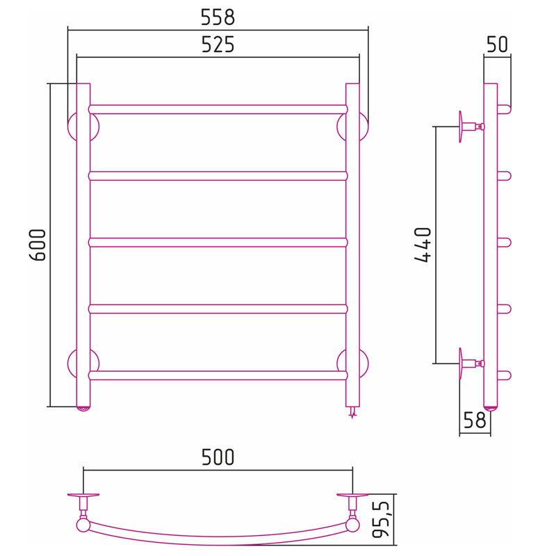 Полотенцесушитель электрический Стилье Формат 40 П/Л 00540-6050/00541-6050, высота 60 см x ширина 50 см, хром