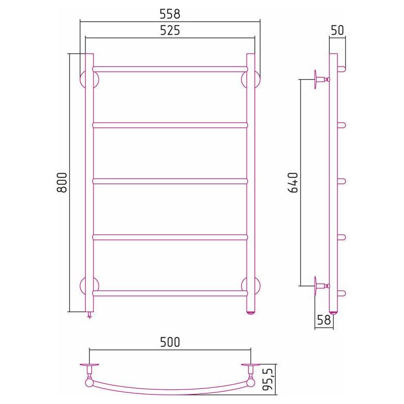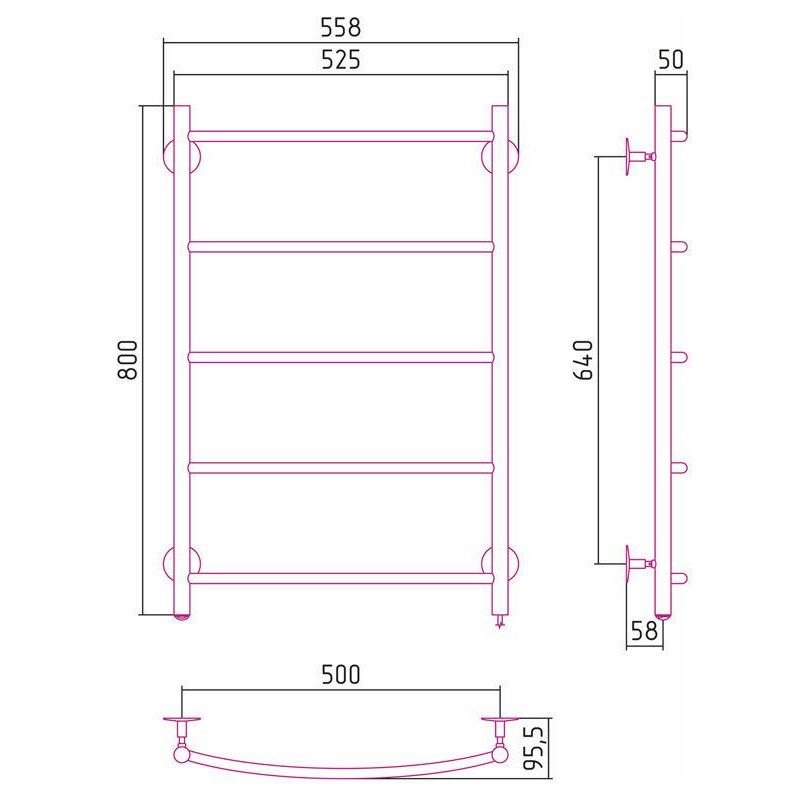 Полотенцесушитель электрический Стилье Формат 40 П/Л 00540-8050/00541-8050, высота 80 см x ширина 50 см, хром