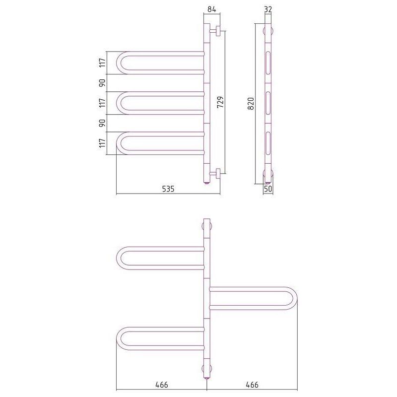 Полотенцесушитель электрический Стилье Формат 50 ПВ 00550-0830, 3 поворотные полки, высота 80 см x ширина 50 см, хром
