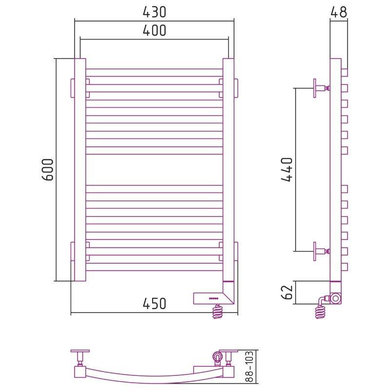 Полотенцесушитель электрический Сунержа Аркус 2.0, высота 60 см, ширина 40 см, диммер справа, цвет хром, 00-5605-6040