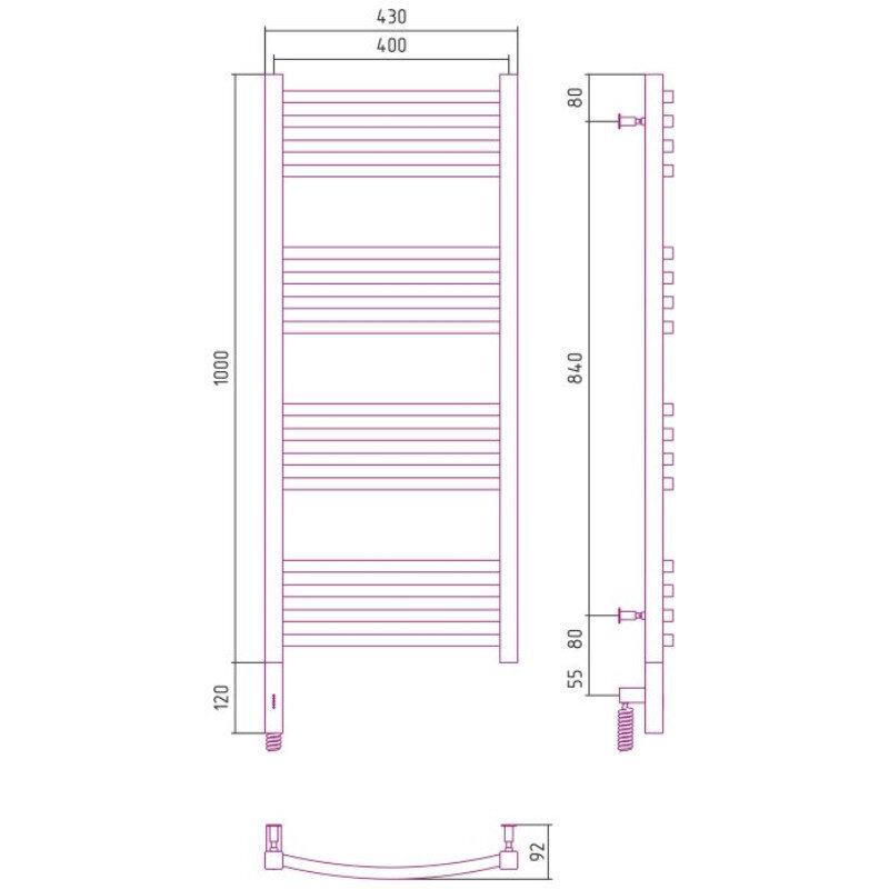 Полотенцесушитель электрический Сунержа Аркус 3.0, высота 100 см, ширина 40 см, диммер слева/справа, цвет шампань, 020-5704-1040/020-5705-1040