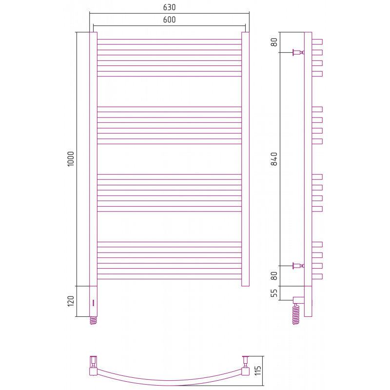 Полотенцесушитель электрический Сунержа Аркус 3.0, высота 100 см, ширина 60 см, диммер слева/справа, цвет матовое золото, 032-5704-1060/032-5705-1060