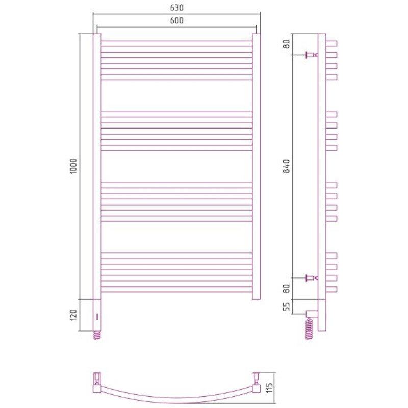 Полотенцесушитель электрический Сунержа Аркус 3.0, высота 100 см, ширина 60 см, диммер слева/справа, цвет шампань, 020-5704-1060/020-5705-1060