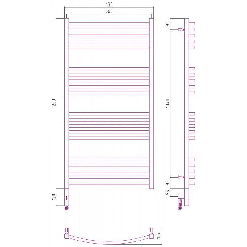 Полотенцесушитель электрический Сунержа Аркус 3.0, высота 120 см, ширина 60 см, диммер слева/справа, цвет матовое золото, 032-5704-1260/032-5705-1260