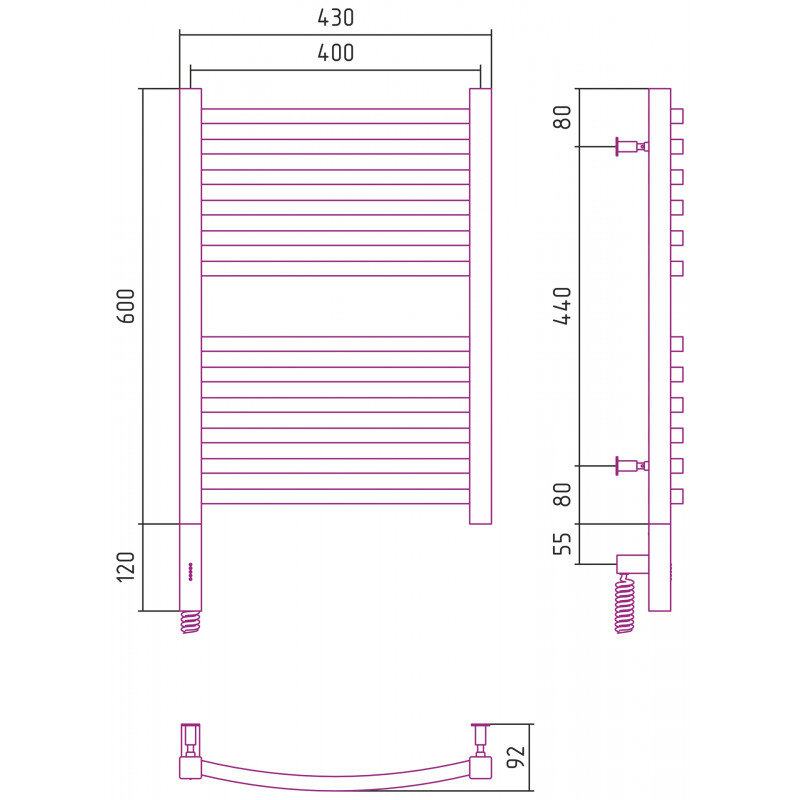 Полотенцесушитель электрический Сунержа Аркус 3.0, высота 60 см, ширина 40 см, диммер слева/справа, цвет состаренная латунь, 051-5704-6040/051-5705-6040
