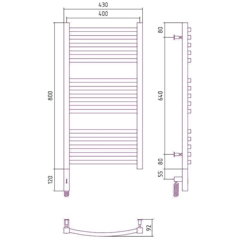 Полотенцесушитель электрический Сунержа Аркус 3.0, высота 80 см, ширина 40 см, диммер слева/справа, цвет хром, 00-5704-8040/00-5705-8040