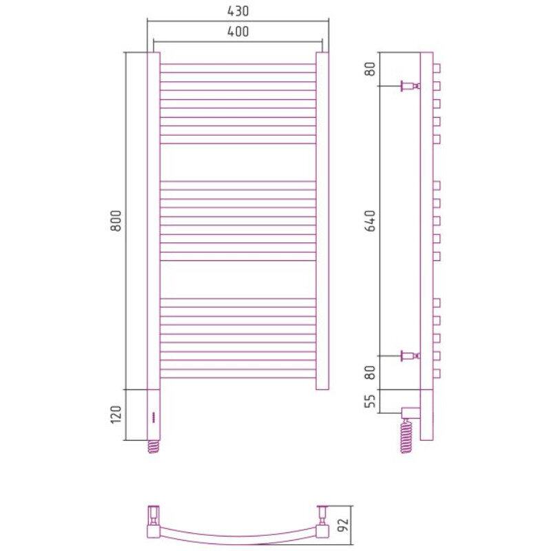 Полотенцесушитель электрический Сунержа Аркус 3.0, высота 80 см, ширина 40 см, диммер слева/справа, цвет шампань, 020-5704-8040/020-5705-8040
