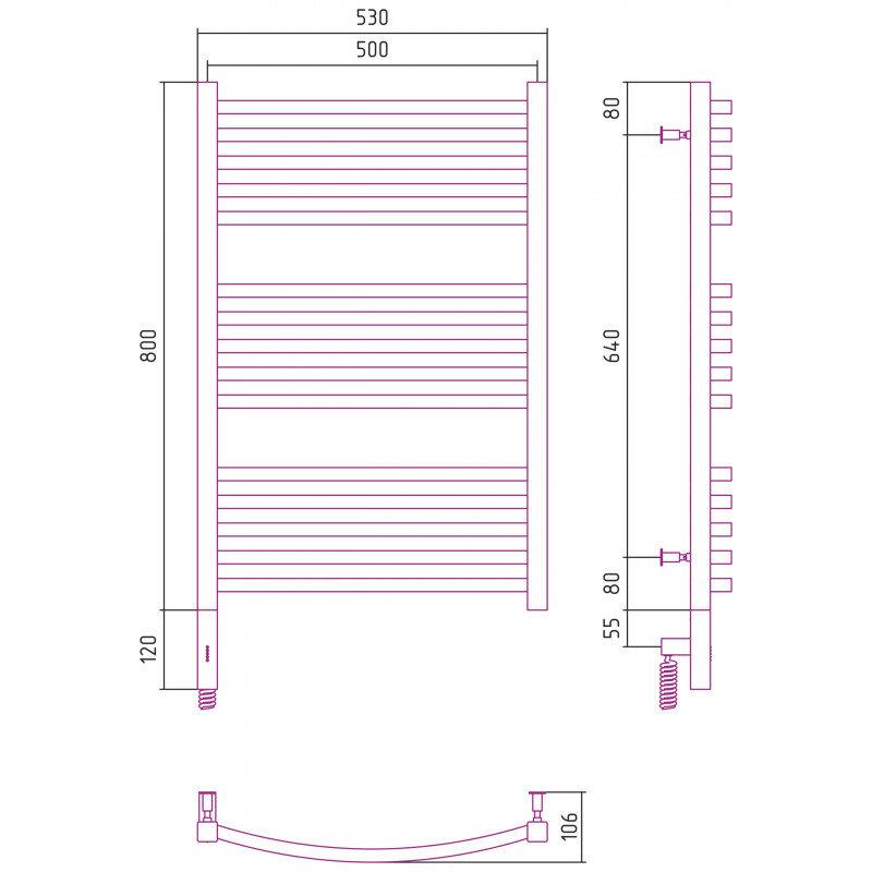 Полотенцесушитель электрический Сунержа Аркус 3.0, высота 80 см, ширина 50 см, диммер слева/справа, цвет состаренная латунь, 051-5704-8050/051-5705-8050