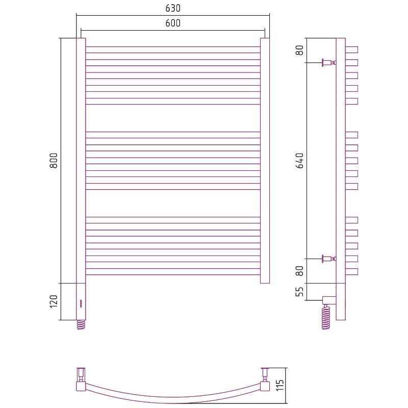 Полотенцесушитель электрический Сунержа Аркус 3.0, высота 80 см, ширина 60 см, диммер слева/справа, цвет хром, 00-5704-8060/00-5705-8060